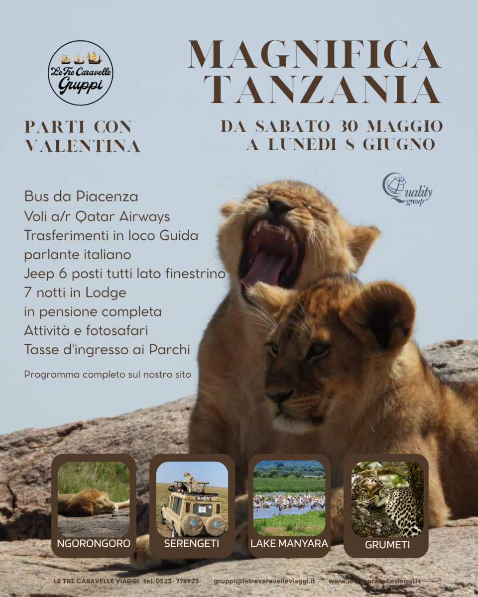 Ore 11.30 Ritrovo allo Stadio Garilli di Piacenza per il trasferimento privato in tempo utile all’Aeroporto di Malpensa per il volo Qatar Airways con destinazione Kilimanjaro via Doha. Pernottamento a bordo.