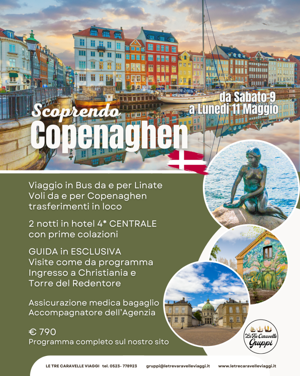All’arrivo ore 19.05 trasferimento con bus privato in hotel 4* situato al centro di Copenaghen.