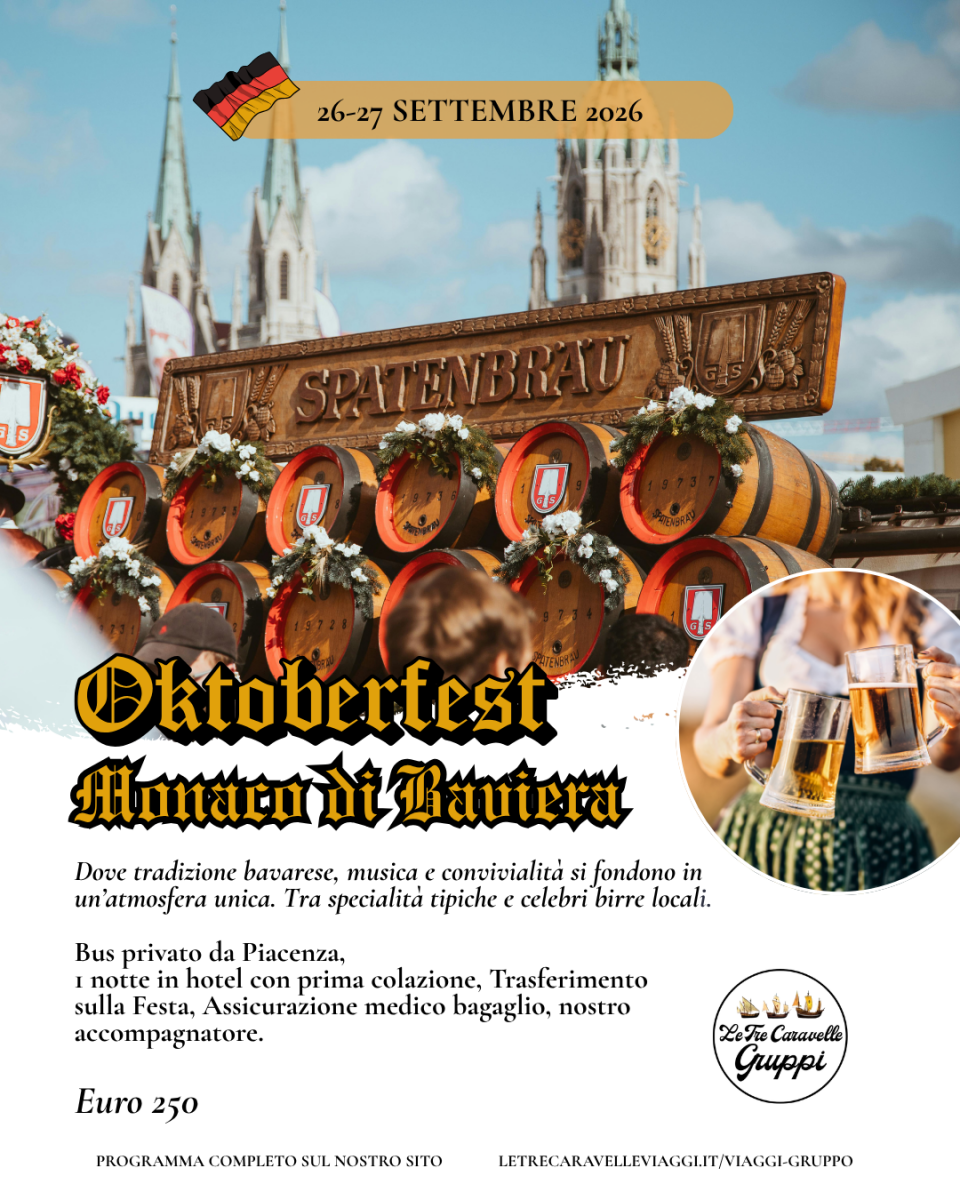 Arrivo previsto attorno all’ora di pranzo al Theresienwiese, il grande spazio verde nel cuore di Monaco di Baviera sede dell’Oktoberfest, arrivata nel 2026 alla 191° edizione. Con circa sei milioni di ospiti all'anno, l'Oktoberfest è la più grande festa popolare del mondo dove si celebra la tradizione bavarese con cibo delizioso, birra di Monaco e innumerevoli giostre e attrazioni sul terreno del festival e nei tendoni.
