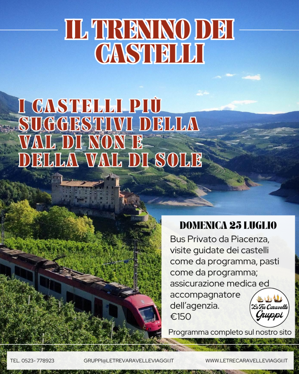 08.42 Partenza del trenino per scoprire i castelli più suggestivi della Val di Non e della Val di Sole. Colazione genuina a bordo firmata Melinda e SOSI Trento.